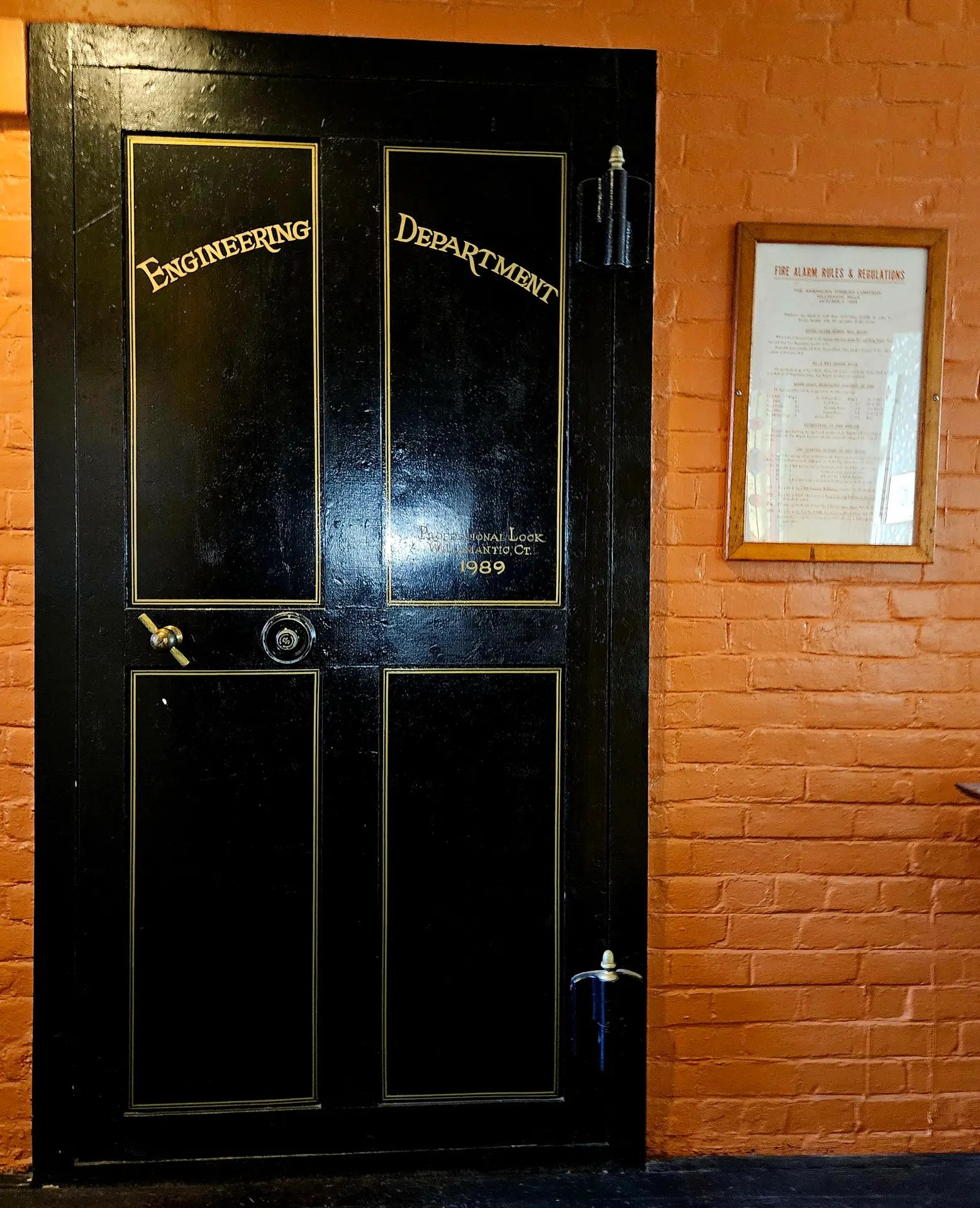 The Mill Company Office Exhibit features a desk and chair from the American Thread Company, a safe, a vintage typewriter that visitors can use, and numerous pieces of vintage office equipment that we ask visitors not to use. The owners of the earliest factories did not expect they would need much office space, and so 19th-century mill offices and office buildings tended to be quite small. In the 20th century, office space expanded greatly. The gray granite building below was constructed in the mid-1800s as the office of the Willimantic Linen Company. Less than 20 years later, the WLC had outgrown the space.